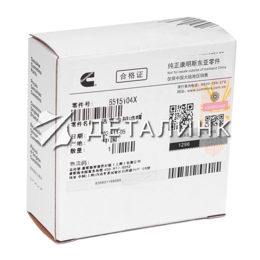 Если вы ищете проверенное качество и профессиональный сервис, «Деталинк» поможет купить форсунка охлаждения поршня бренда Cummins, арт. 6515104X быстро и удобно, в наличии и под заказ.