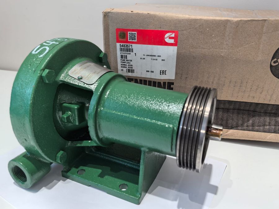 Водяной насос, центрабежного типа, предназначен для принудительной циркуляции охлаждающей жидкости в газопоршневом двигателе Cummins QSK19G. Ременной привод. Чугун, шкив приводного ремня - сталь.