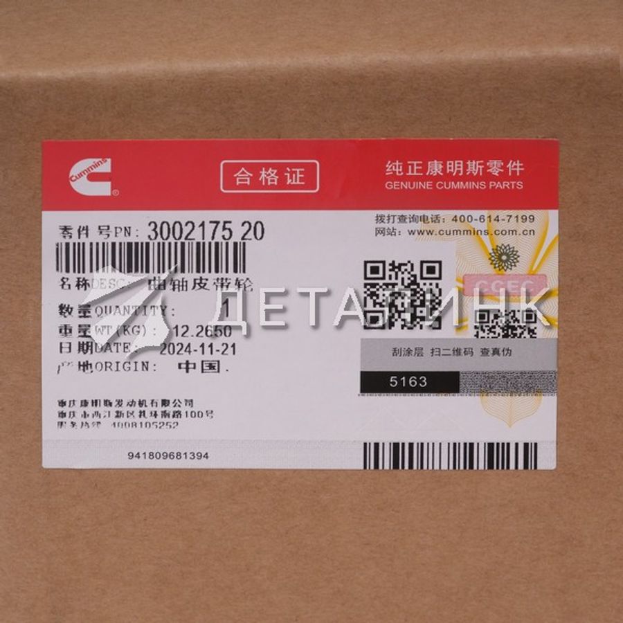 Если вы ищете проверенное качество и профессиональный сервис, «Деталинк» поможет купить шкив вала коленчатого бренда Cummins, арт. 3002175-20 быстро и удобно, в наличии и под заказ.